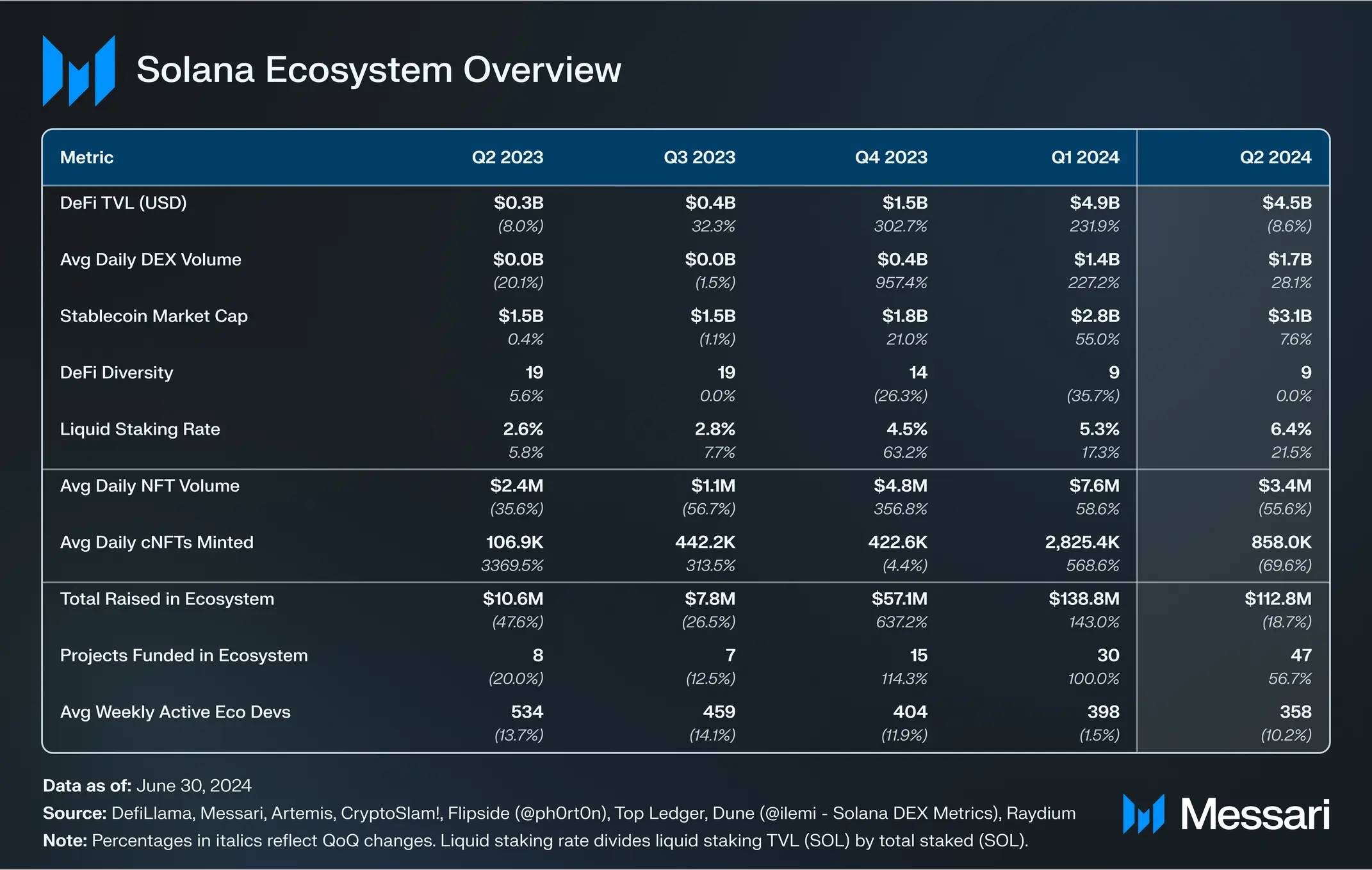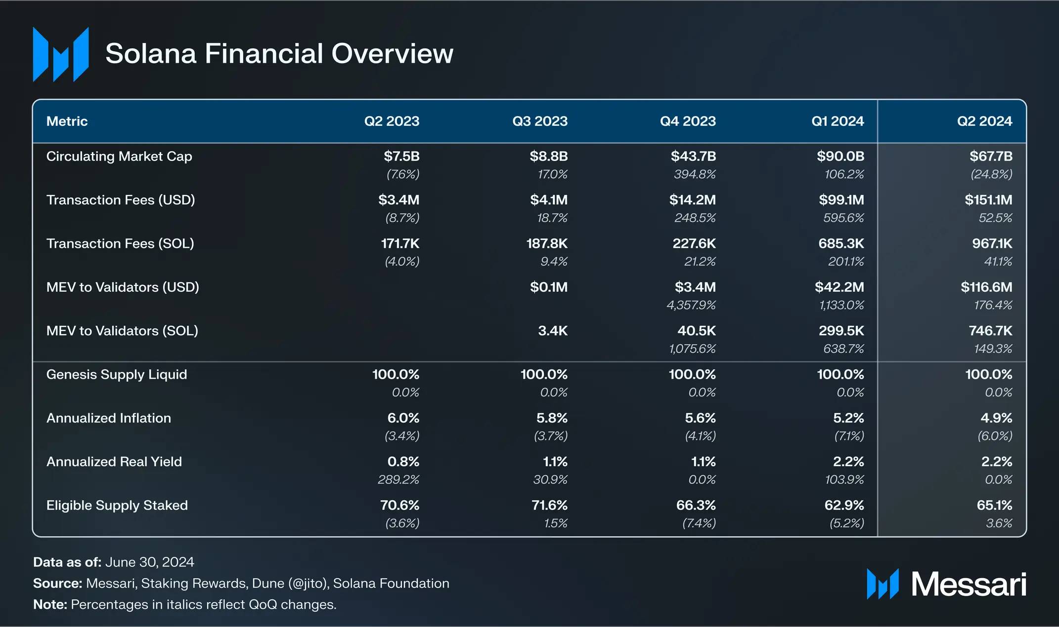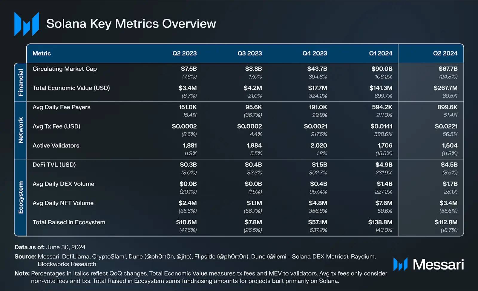 Messari Solana Q2 研报:总经济价值环比增长53%,扩容与 Blinks 方案趁势崛起