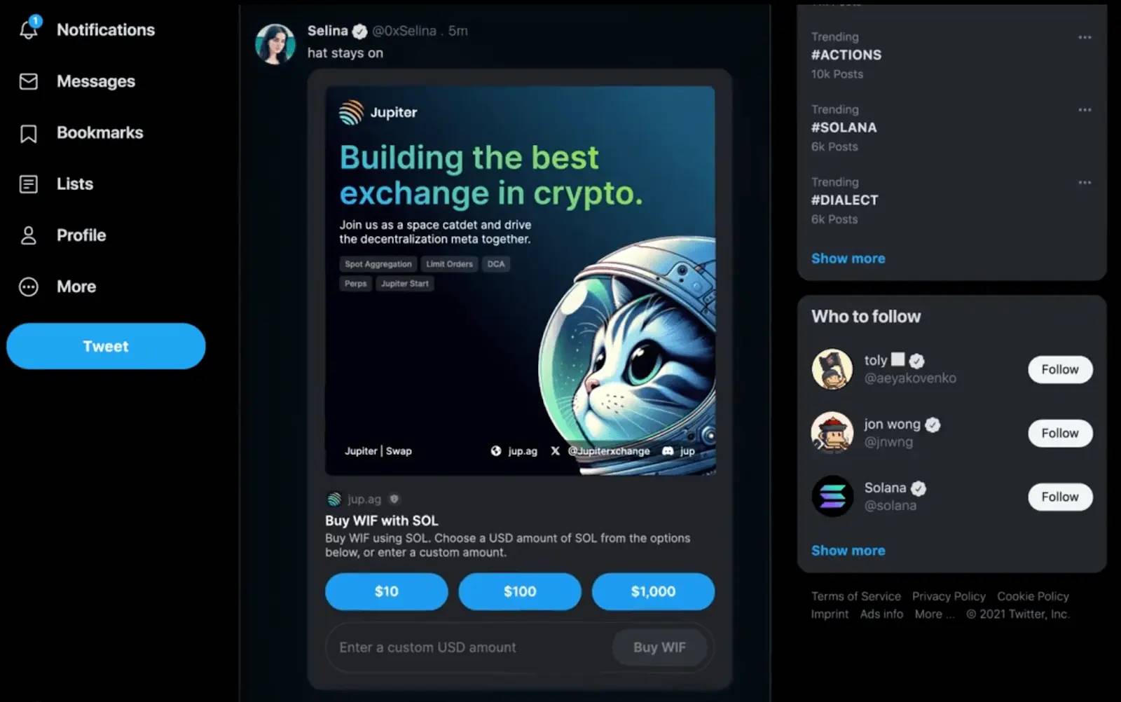 许多顶级 Solana 项目已经创建了 blinks,包括 Jupiter、Tensor、Sphere 和 TipLink。Blinks 构建者可以通过 Superteam Earn 轨道申请小额拨款(每个拨款最高 1000 美元)或直接从 Solana Foundation 申请更大的拨款(总共分发高达 40 万美元)。