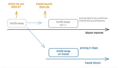 Unisat 当前正在开发 brc20 swap 模块,并将在未来推向比特币的主网和 Unisat 开发的二层网络 Fractal Bitcoin。在开发进度上,L1 上的 swap 的发布日期有待进一步确认,但 Fractal swap 是一款完全在时间范围内完成的产品,计划于今年 9 月上线。