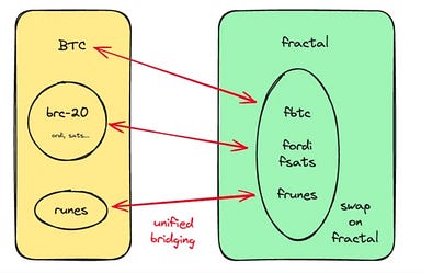 Fractal Bitcoin 的目标在于通过 brc20 标准来拓展比特币网络,在 Fractal Bitcoin 上,Unisat 将提供功能与主网 swap 模块相同的产品 – —Fractal Swap,确保 Fractal Bitcoin 上的项目从一开始具有良好的流动性。在后续迭代中,BTC 和其他主网资产也可以作为 brc-20 包装资产存在于 Fractal Bitcoin 上,从而提供更大的灵活性。