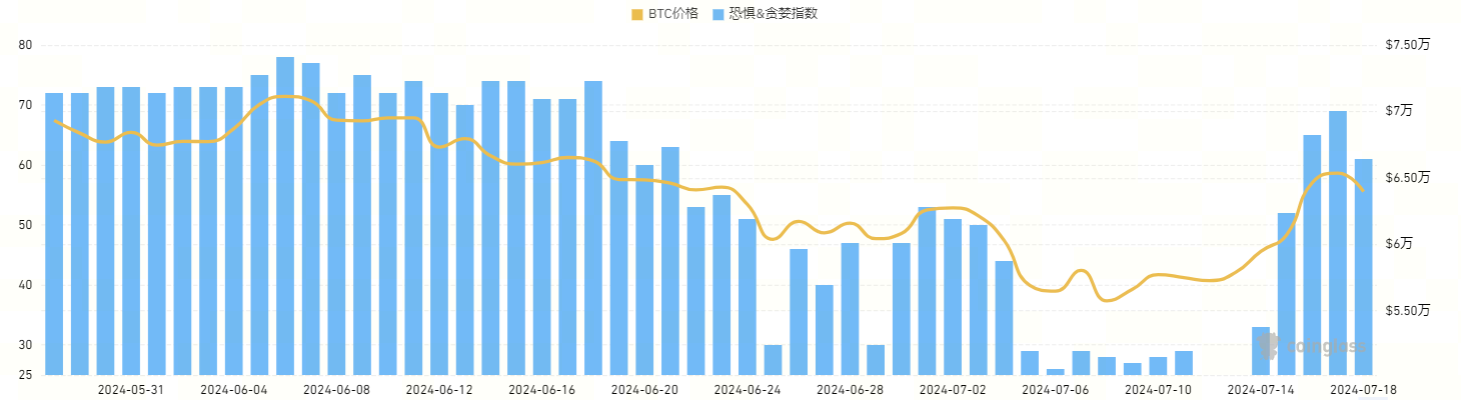 本周市场受抛压减少影响一路走强,比特币(BTC)价格走势十分强劲,山寨市场也随之走强。7月23日,以太坊现货ETF可能落地,市场短期情绪获得支撑,比特币恐慌与贪婪指数转为贪婪。