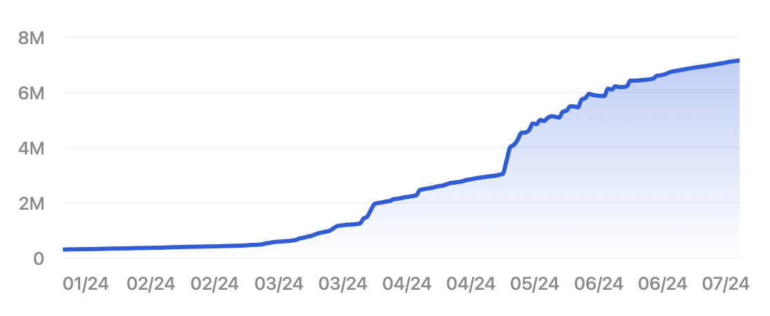 研究院先期撰文中有提到,稳定币作为加密市场需求的晴雨表,自24年初至今整体市值上涨月300亿美元,增长较上个周期2021H2~2022H1明显下滑。伴随行业偏金融属性的泡沫挤出,新增用户匮乏和存量用户博弈之间的矛盾使整个市场的增长陷入困境。加密市场流动性紧缩问题愈加突出。围绕Telegram构筑起来的流量叙事,在本周期是否有望成为全球市场的共识?这尚待时间和市场的检验。但关于Telegram的加密生态已初现锋芒。