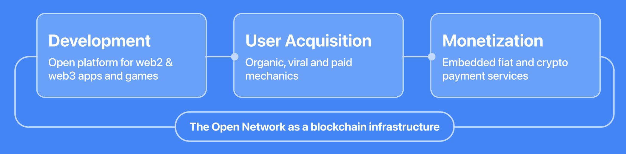 5. 基于TON底层基础设施的开发,利用中心化平台流量获客,再实现商业化增长和产品迭代,基于Telegram和TON的生态实现一定意义上的闭环。