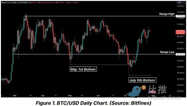 Bitfinex 分析师表示:「BTC 在 68,000-69,000 美元区域遭遇强劲上行阻力,并经受住了 7.24% 的周内回调,因为现货市场的累积趋势仍在继续,我们预计 68,000-69,000 美元的水平将继续充当阻力位,预计它会在这些水平附近波动或小幅下跌。」
