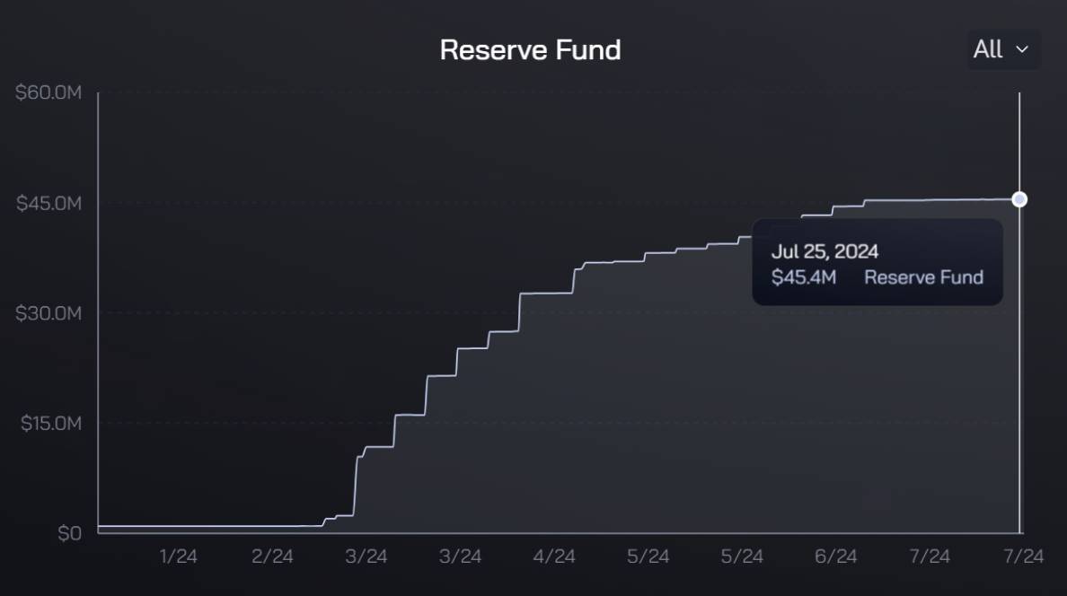 7 月 24 日:宣布计划将其 2.35 亿美元 USDT 稳定币抵押品和 4500 万美元储备基金中的一部分分配给产生收益的 RWA 产品,已有贝莱德 BUIDL 发行 商 Securitize 和 Steakhouse Financial 向 Ethena 治理委员会申请获得 Ethena 储备基金拨款。