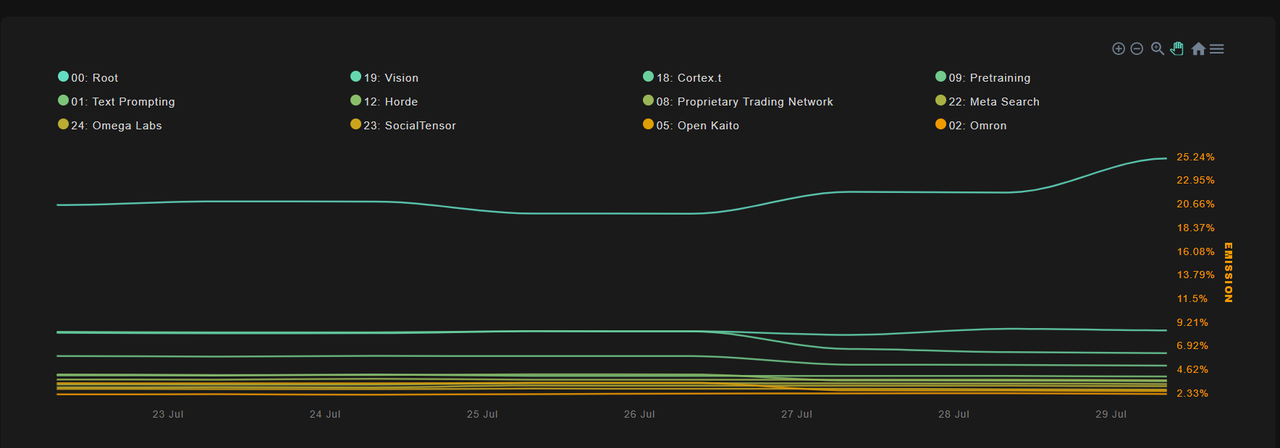 目前 Cortex.t 子网回收节点总价值约 27134 TAO。