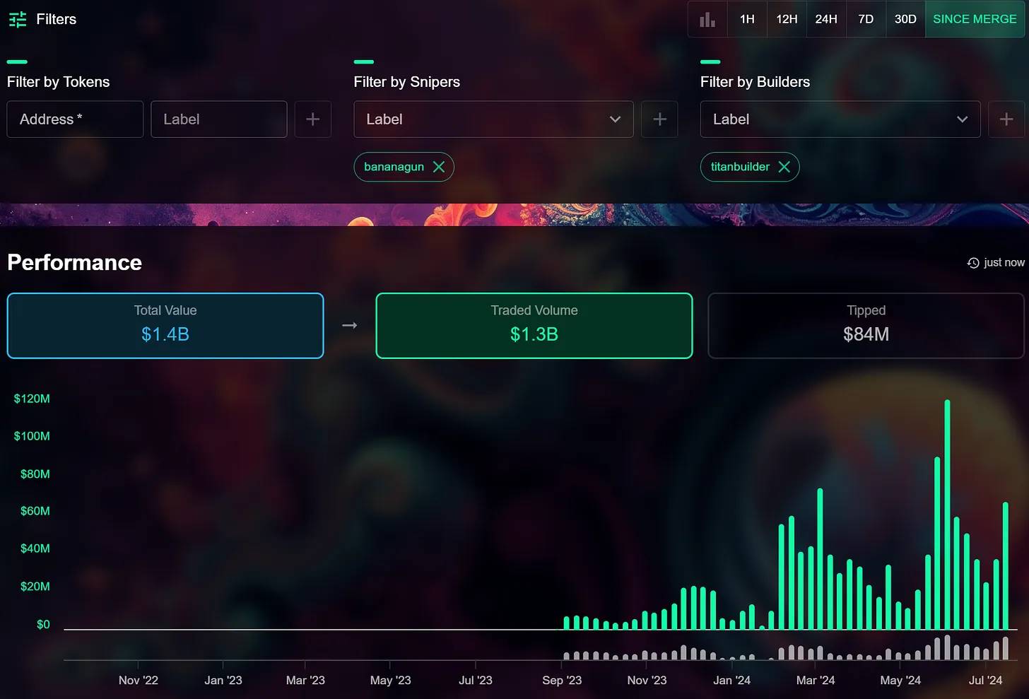 以太坊 PBS 生态中最盈利的构建者,这在很大程度上归功于 Banana Gun 团队对它的 EOF 支持。