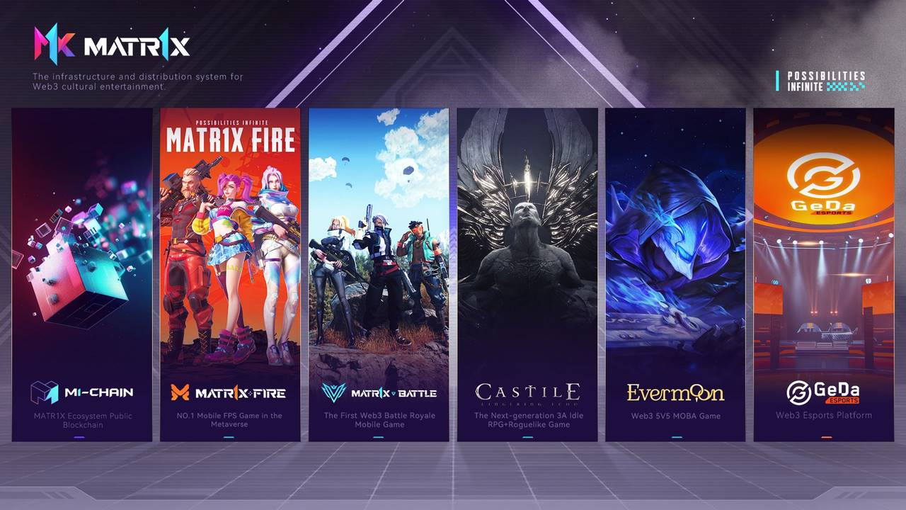 现在的Matr1x已经有了 MATR1X FIRE 、MATR1X BATTLE、Castile、Evermoon 四款3A级游戏,分别对应FPS, 逃杀,卡牌,MOBA 4种不同类型,也基本涵盖热门手游已经印证的最成功和吸金的游戏类型。