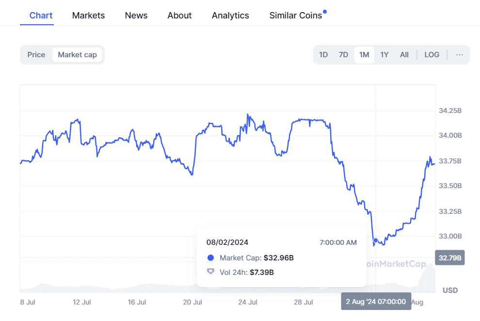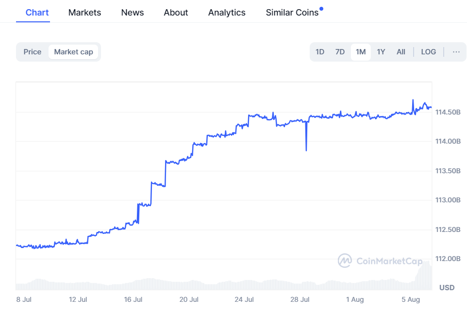 代表美国资本的 USDC 则从 329 亿美元,总市值回升至高点 338 亿美元,短短数天增长近 10 亿美元。