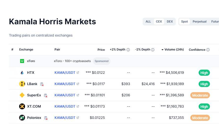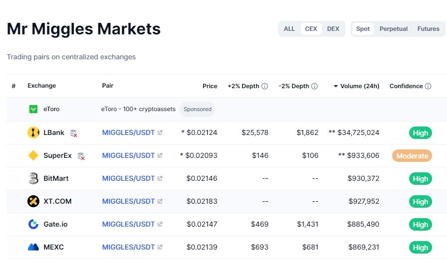 以最近最为火热的meme币MIGGLES、FIGHT、KAMA为例,从图片(数据来源于CMC)可以看出,这些火爆出圈的meme币并没有被一线知名交易所上线,上线这些币种的大多是二流交易所,比如LBank、MEXC、Gate.io、BitMart等。其中LBank的流通量、交易深度、交易量断档领先,这些数据反映出LBank在这些热门meme币领域具有“主盘”地位,这在一定程度上保证了用户的交易体验,可以实现丝滑交易,减少滑点,而这些特点对于meme币交易来说至关重要。