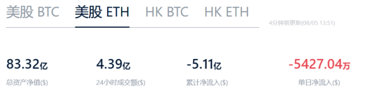 ETH 现货 ETF 净流入数据图表