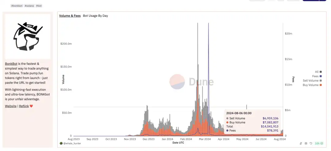 目前 Solana TG Trading Bot 中交易量第一的 bot,单日交易量约为 1400 万美元。