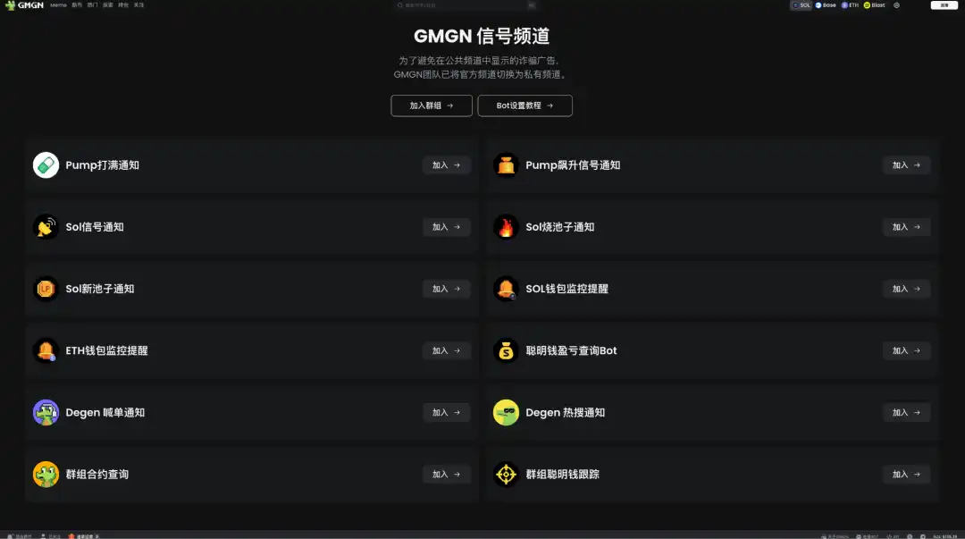 GMGN 一个开发了数十个 TG 频道,其中包括 GMGN Sniper Bot,也就是下文分析的 bot。