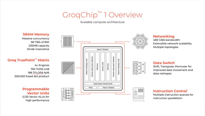 Groq 的技术核心在于其创新的处理器架构。与传统的 CPU 和 GPU 处理器不同,Groq 的设计理念着眼于提升计算能力和效率,特别是针对现代 AI 和数据密集型应用的需求。