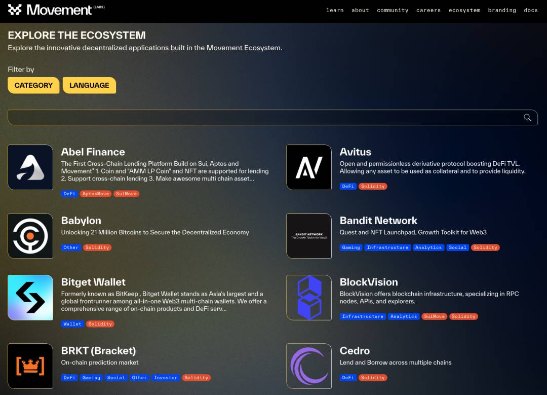 来源:https://movementlabs.xyz/ecosystem/page/1