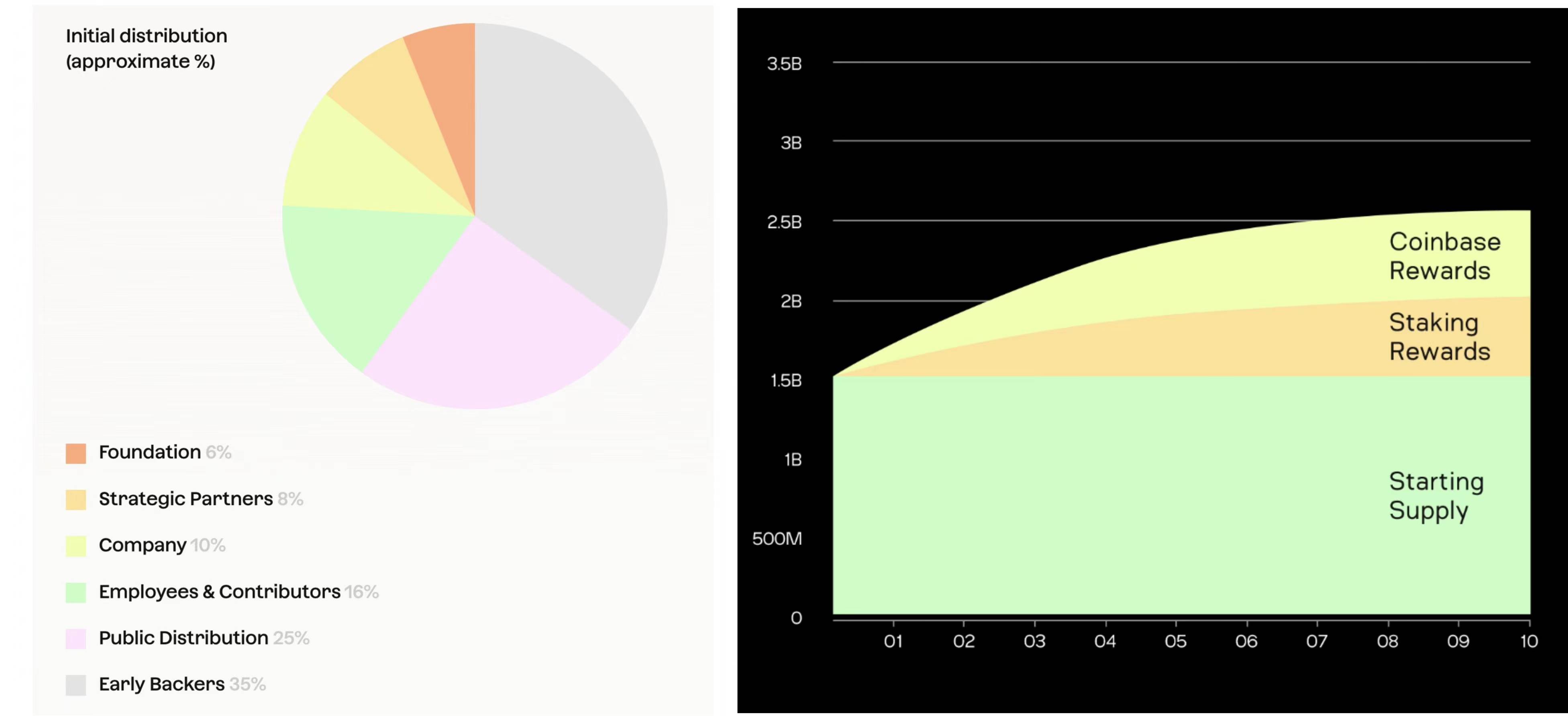 • 发行时的初始供应量为15 亿 Aleo 积分。这些积分分配比例如下:早期支持者(35%)、面向大众分配(25%)、员工和贡献者(16%)、公司(10%)、战略合作伙伴(8%)和基金会(6%)