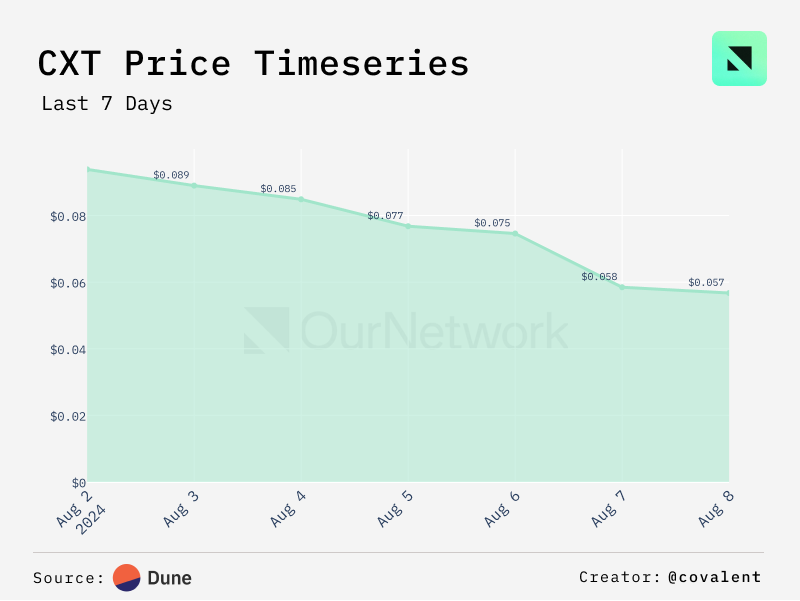 在过去一周中,CXT 的价格大幅下降,24 小时内下降了 24.2%,过去七天下降了 42.6%。这种急剧下降可能是由于广泛的市场动态所致。