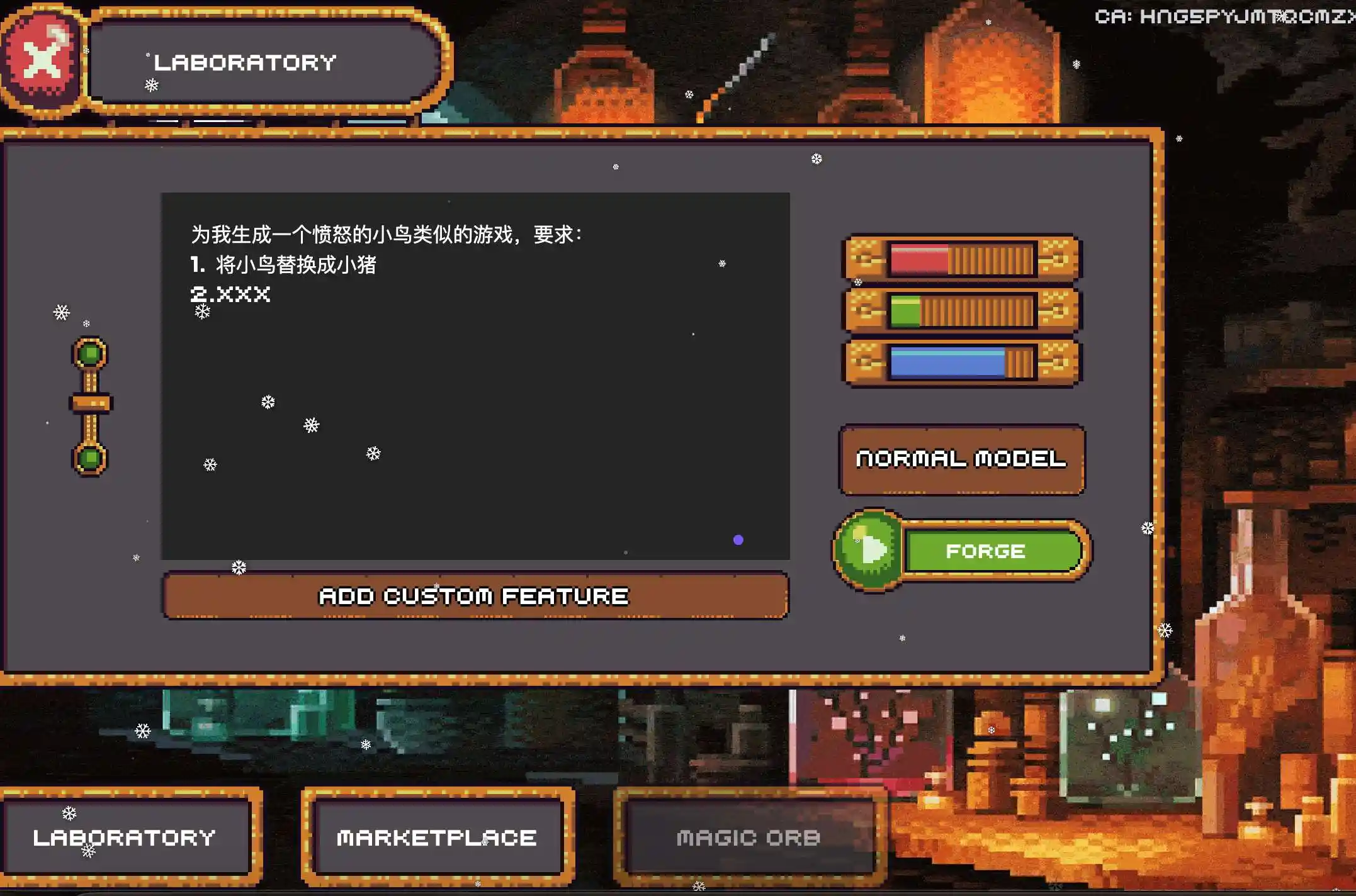 整个过程也非常简单,链接钱包输入你想要的应用的描述,平台就会运行一段时间然后为你生成对应的程序(比如截图中小编试图生成一个游戏)。