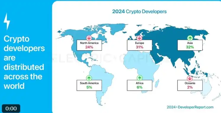 Electric Capital 2024开发者报告:行业以年均39%的速度增长;亚洲成为开发者占比最高的大陆