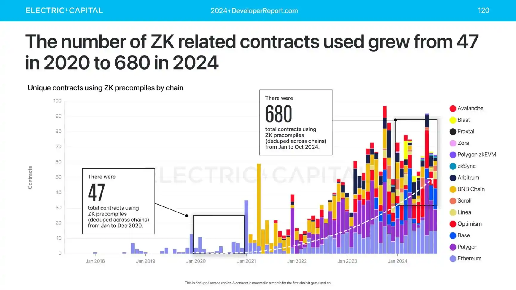ZK 也在获得使用——使用 ZK 预编译的合约从 2020 年的 47 个增长到今年的 680 个。