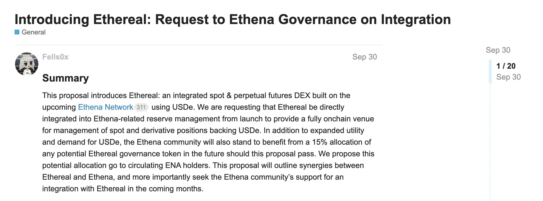 为了获得 Ethena 社区的支持并加深绑定关系,Ethereal 在最初版的提案中即表态将会把 15% 的代币作为空投赠予 ENA 的质押用户。
