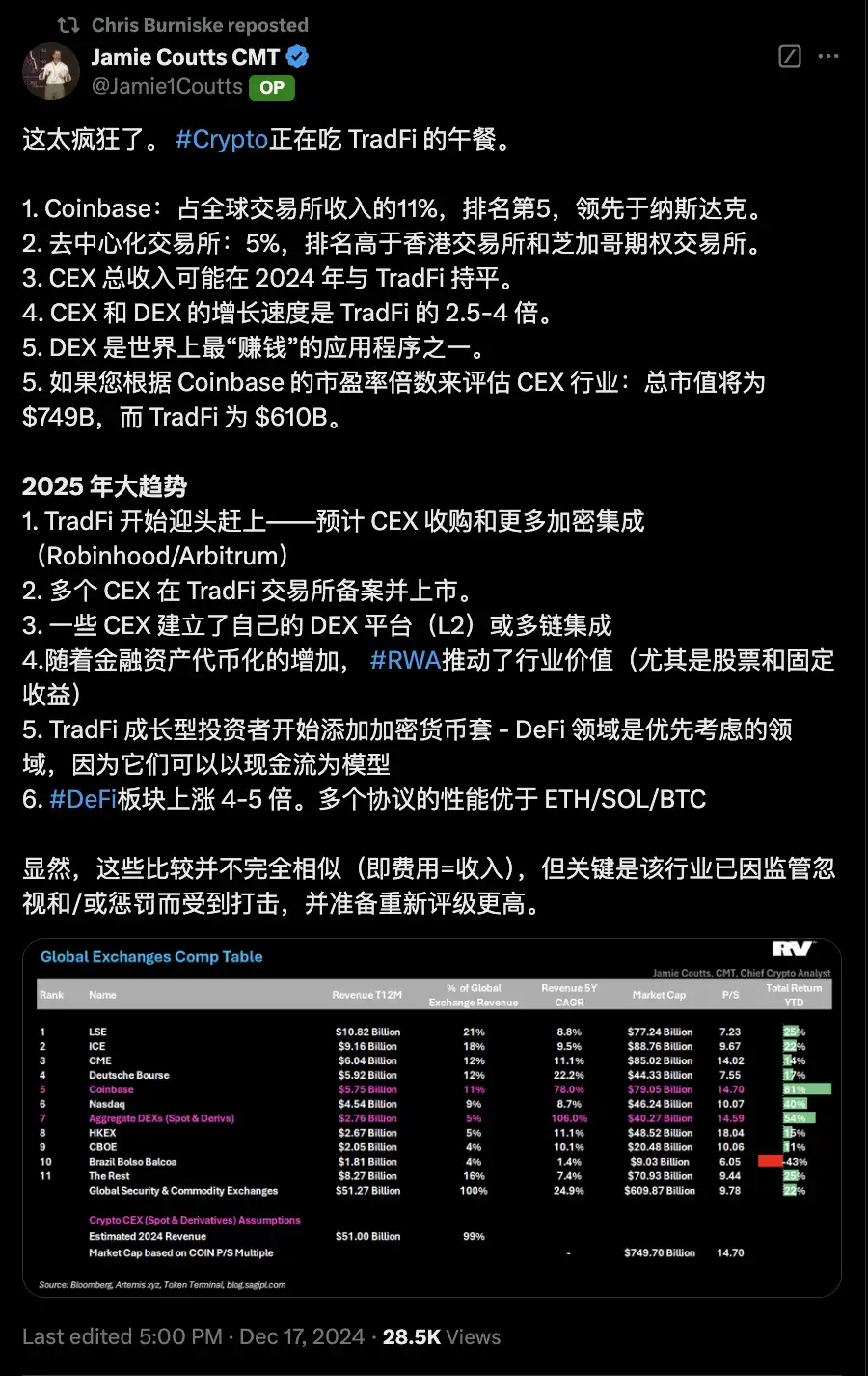 2.Crypto 市值正在超过 TradFi@Jamie1Coutts