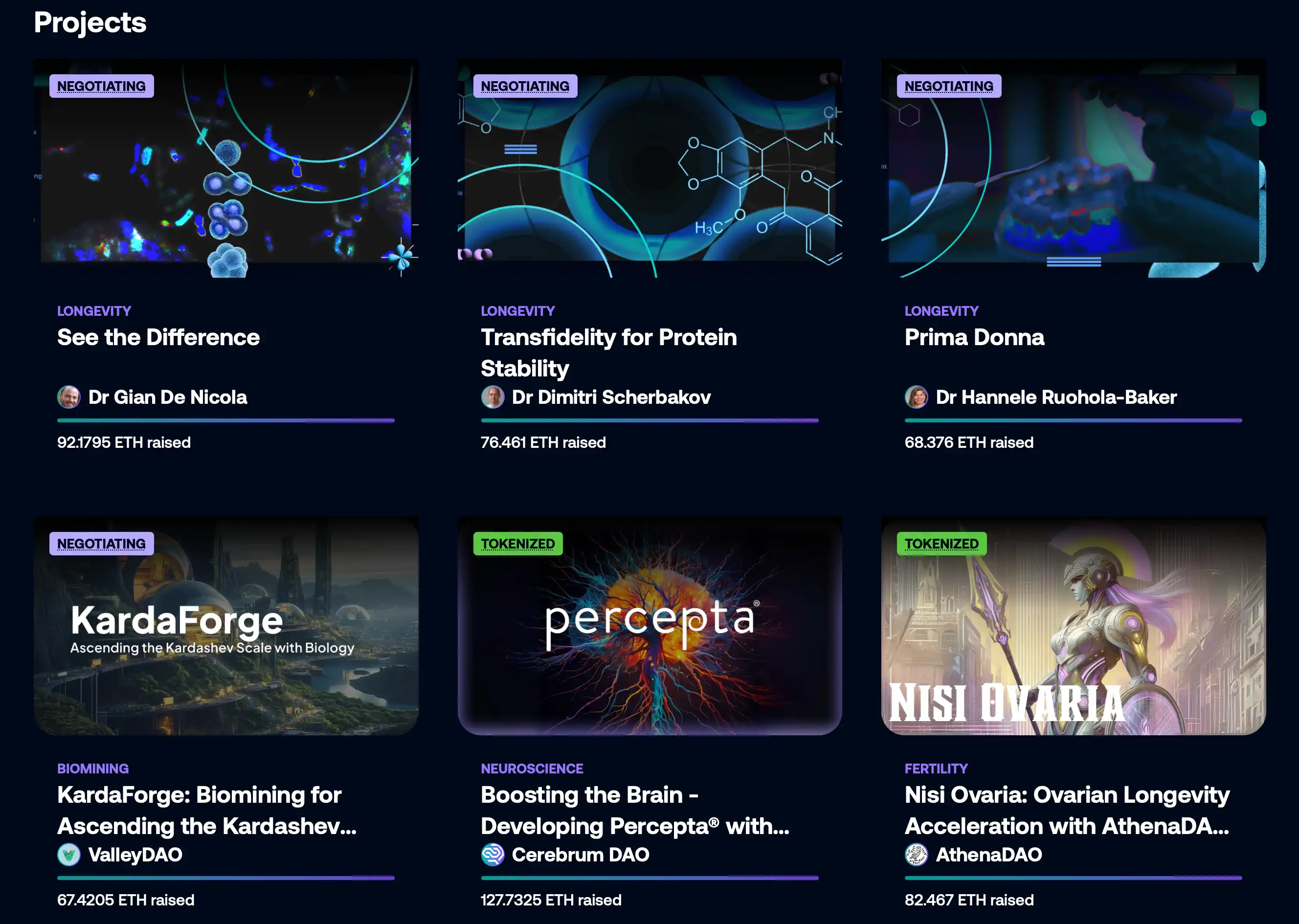 VitaDAO:在长寿科学领域获得 500 多万美元的资金,是辉瑞风投部门和 Balaji Srinivasan 支持的 DeSci 去中心化科学组织,与纽卡斯尔大学合作。值得注意的是,VitaDAO 是「元老中的元老」,是 DeSci 鼻祖、BIO 协议之母 Molecule 的首个 DeSci DAO,专注于长寿领域的研究。当前的 BIO Protocol 协会也是由 VitaDAO 主要成员创立的一家瑞士非营利组织。