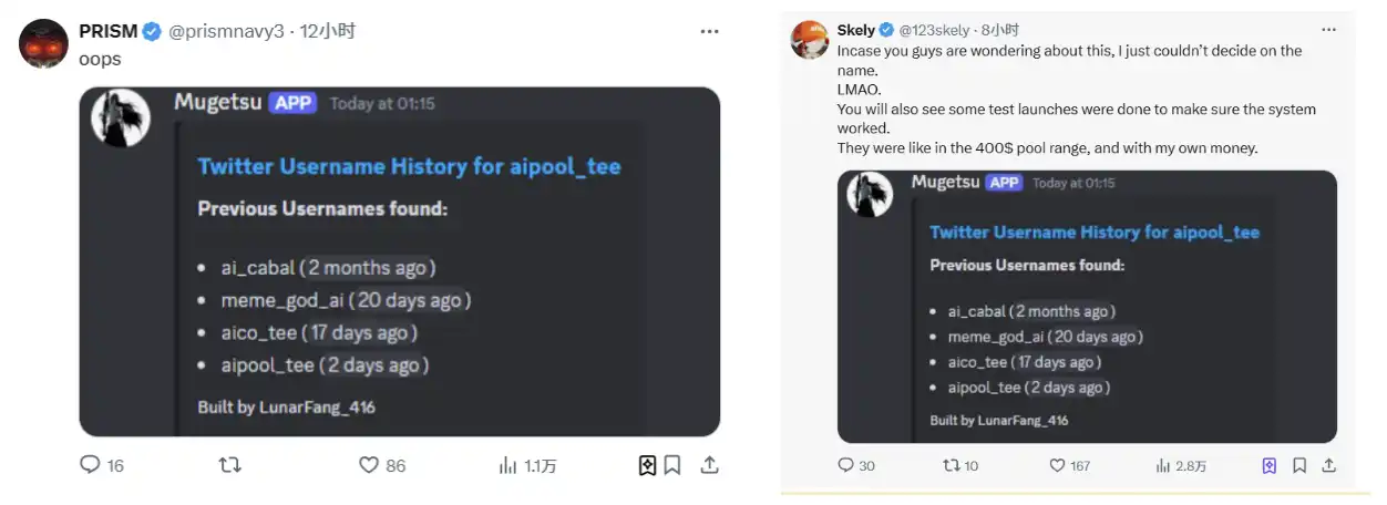 3.也有人扒出这次项目的推特 @aipool_tee 已经多次改名,而且曾用名(cable)并不是很 nice..... 不过 Skely 本人随后也发推承认了项目账号确实有多次改名,但也称这只是为了想出更合适的名字,仅此而已。