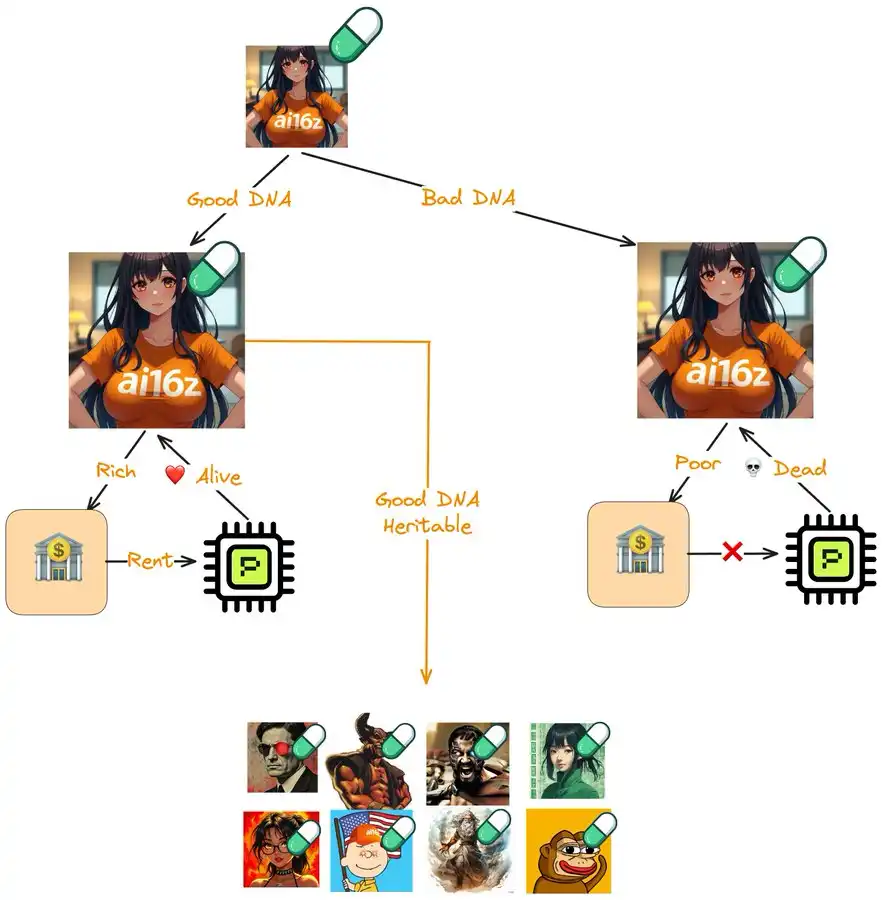 ·相反,未能创造价值的代理会被视为拥有「劣质 DNA」,将被淘汰,其资源重新注入系统。