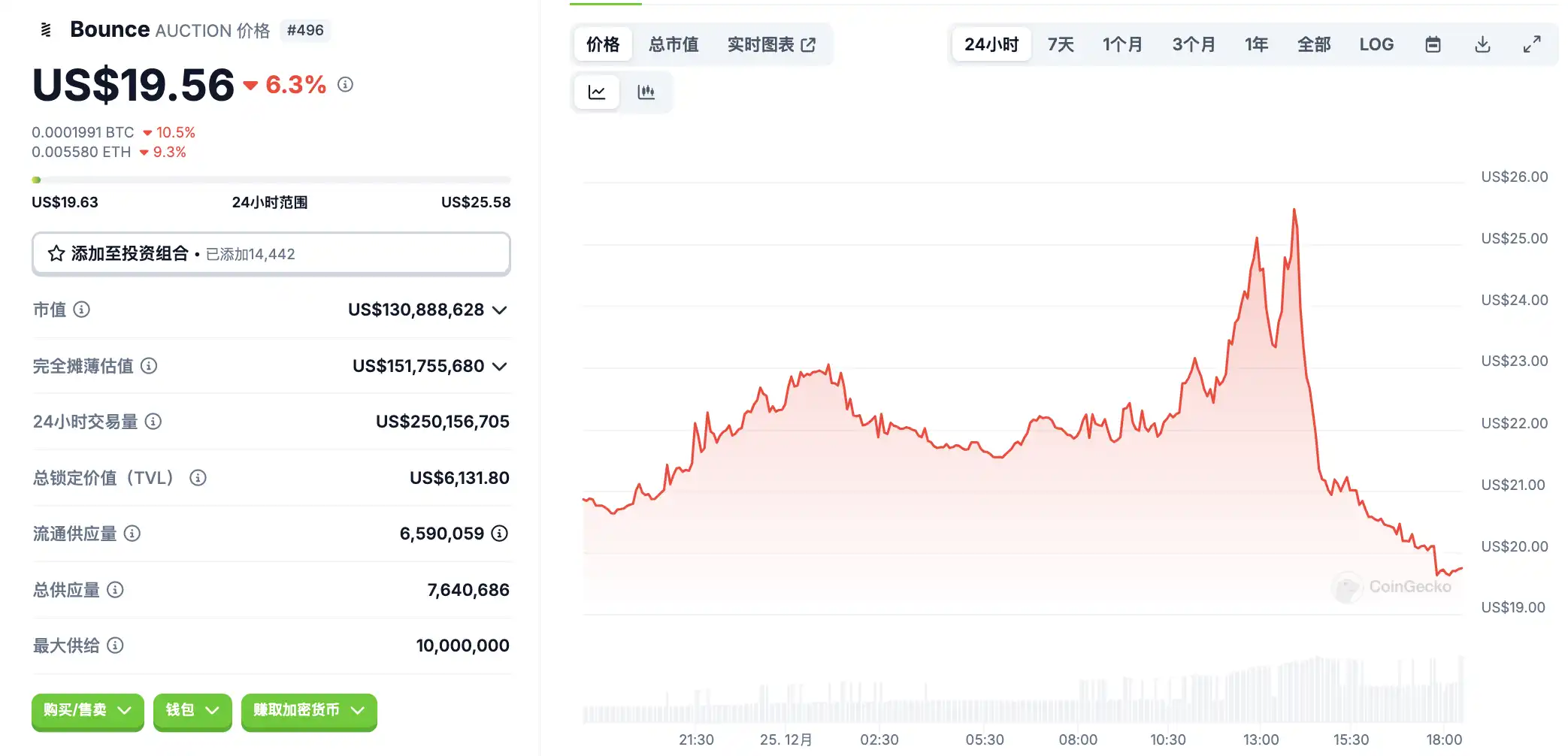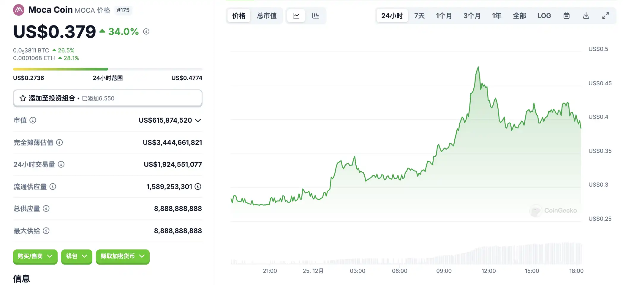 12 月 25 日代币波动情况,按交易量筛选并排列