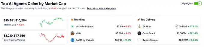 DeFi 赛道虽然当前的市场大环境较差,但是投资者普遍预期明年一季度市场会出现普涨,所以大部分投资者仍不愿意出售手中代币,与此同时为了增加持币收益,纷纷参与机枪池项目,提高收益。AI 板块 AI Agent 赛道受到市场的持续注度,市场规模已达 109 亿美元基于 AI Agent+TEE 的 aipool 的资产发行模式受到了市场的广泛关注