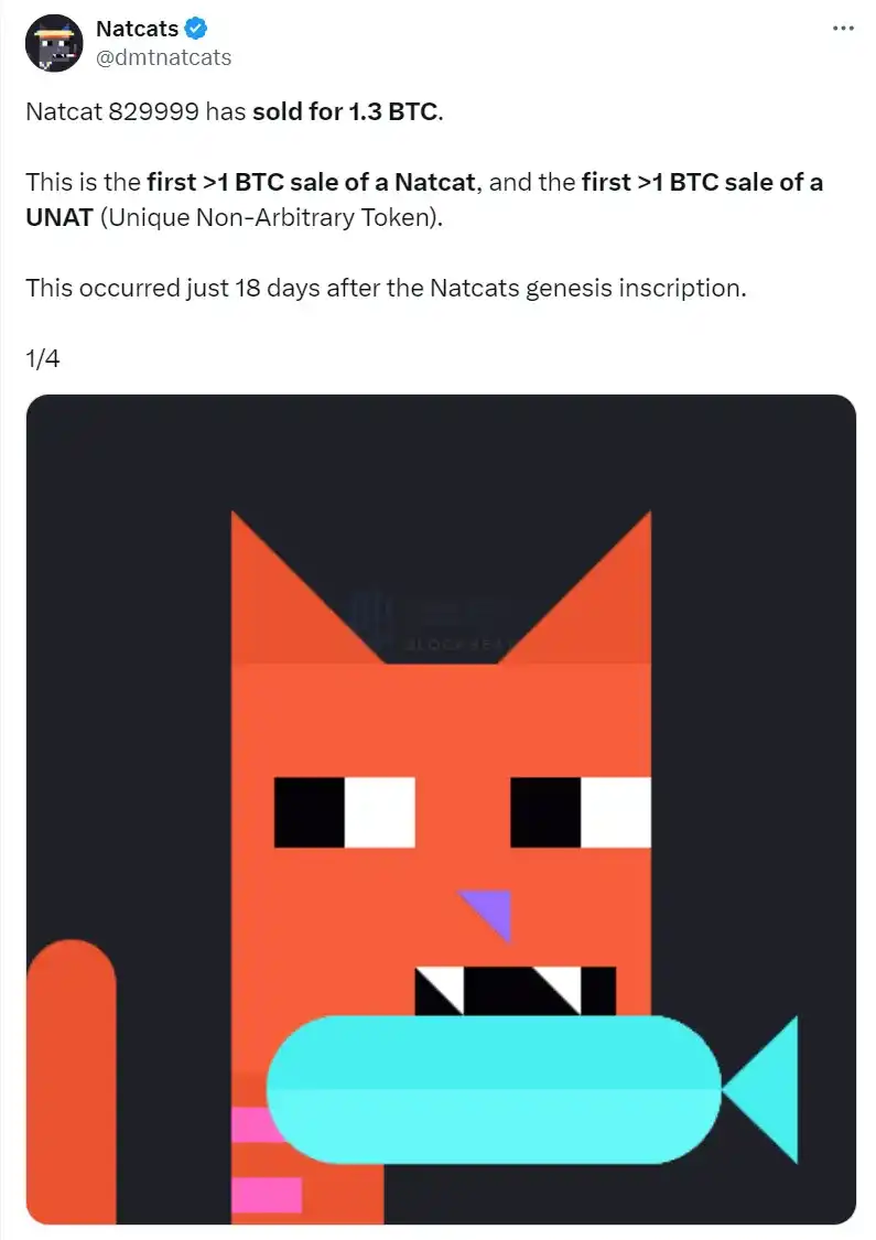 首先是从 2 月底就开始的「DMT(一种理念,由此衍生了一种基于比特币区块数据的生成艺术)」概念上涨。作为 DMT 概念的龙头,Natcats 在还没有上架任何比特币 NFT 交易市场的时候就创出了 1.3 比特币的单个销售记录。