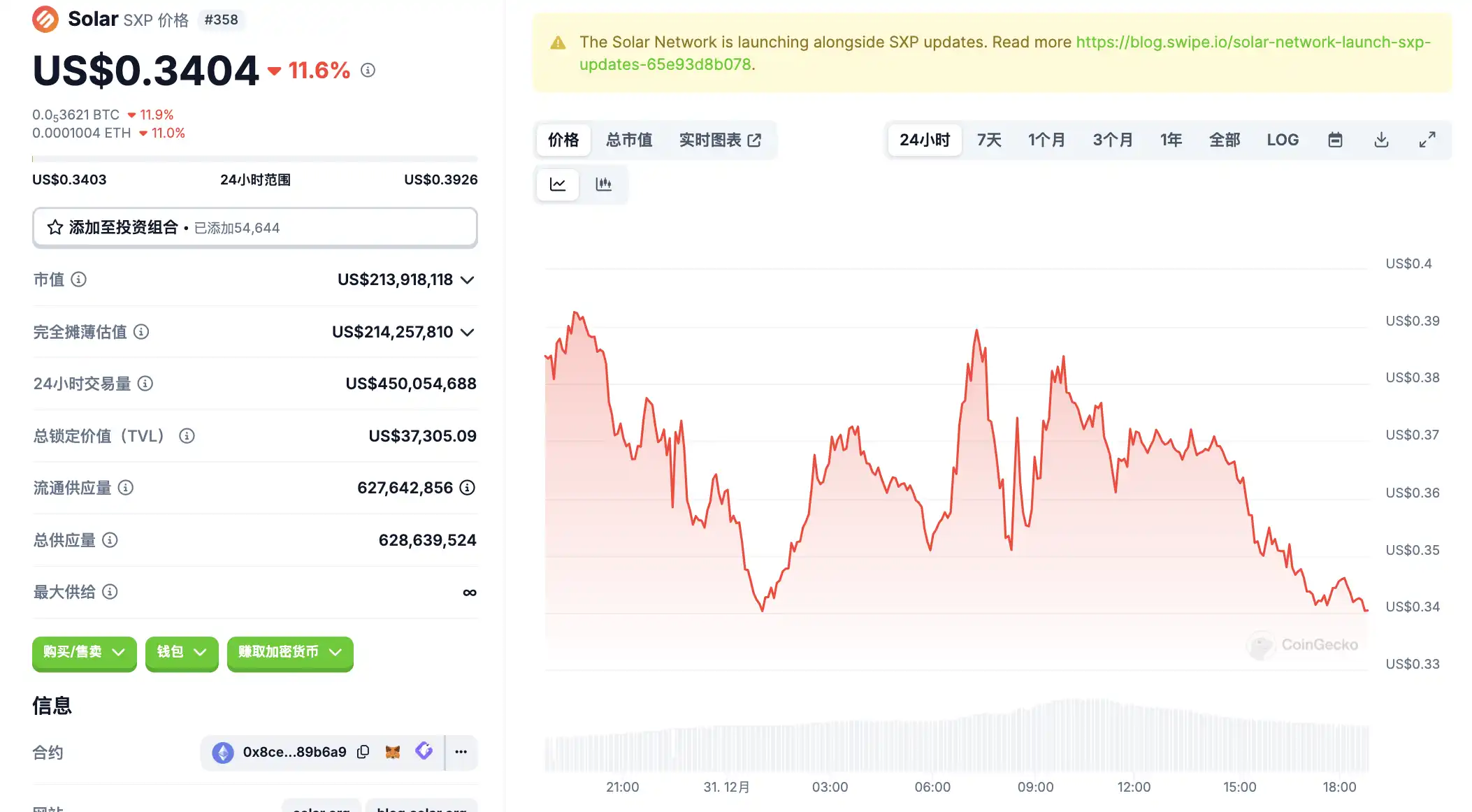12 月 31 日代币波动情况,按交易量筛选并排列