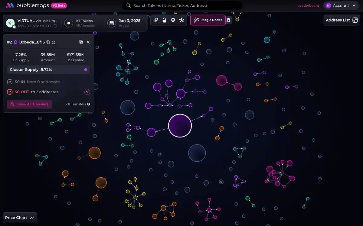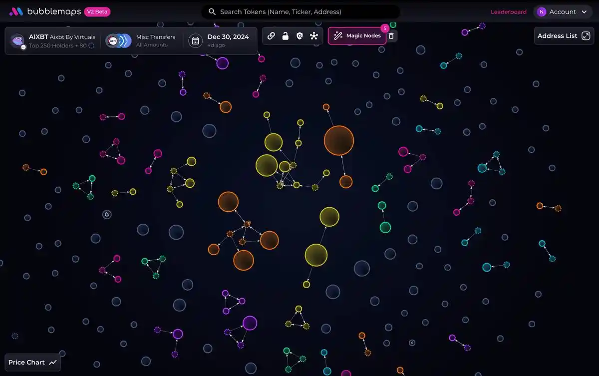 摘要:原文来源:Bubblemaps原文编译:深潮 TechFlow那么,究竟是谁掌控了 AI 智能体的供应量呢?我们分析了他们的集群分布,以下是我们的发现。$AIXBT—20%该分布看起来较为分散,4 个主要集群分别持有约 4%,其中一个与知名加密货币做市商 Wintermute (0xdbf5) 有关