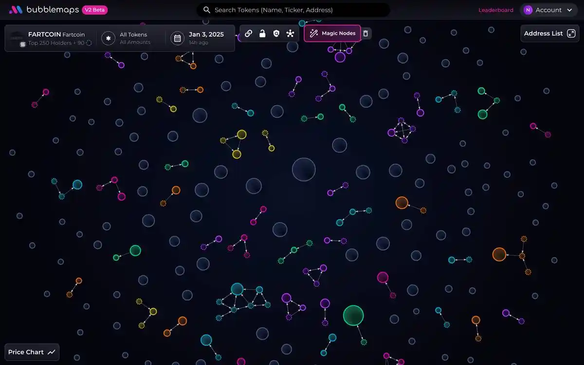 需要注意的是,50% 的供应量已被质押,因此 bubble map 中可能缺少部分信息。