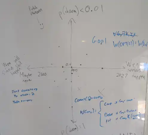 不同的人有截然不同的人工智能时间表。图表来自 2023 年黑山的 Zuzalu。