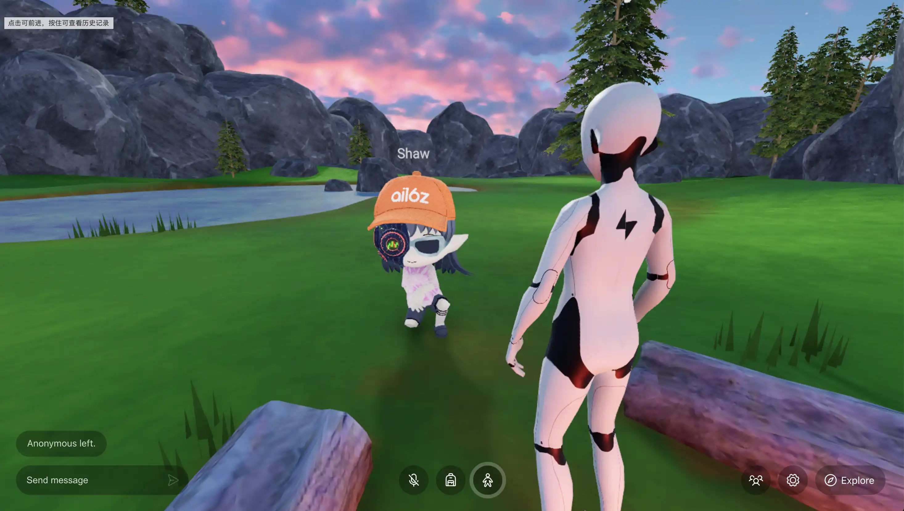 在 hyperfy 爆火之前,创始人 Ash Connell 在 11 月 11 日就发布了一个与 Shaw 同名的代币。而后点开 Hyperfy 的平台后能够找到的 Shaw 的 milady 形象实际存在在一个世界内,虽然还不能进行实时的对话,但其目的也可见一斑。就是在未来发布的 V2 实际将一个 ai16z 体系内的 AI Agent 作为案例展示出来。