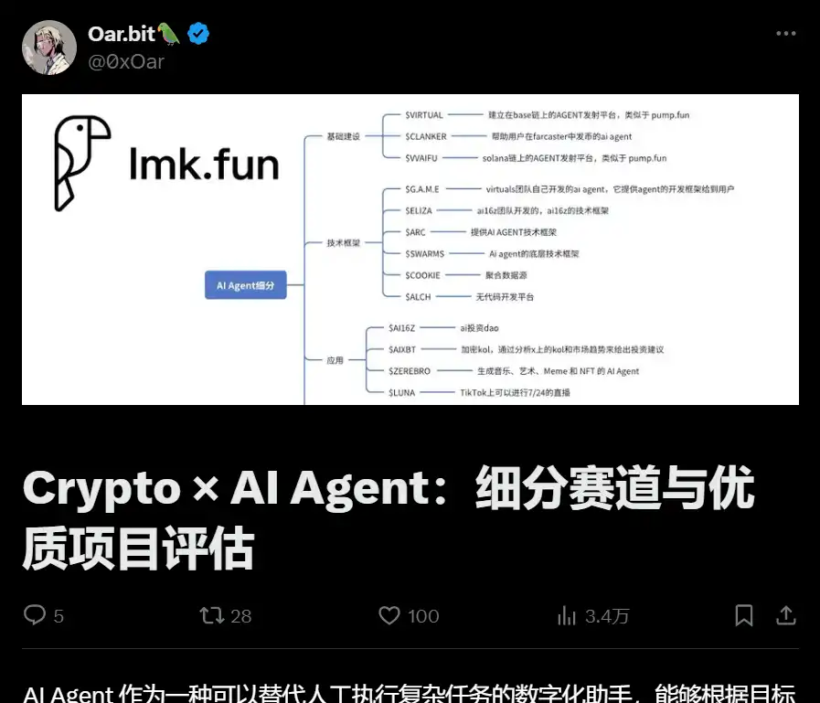 2.Crypto × AI Agent:细分赛道与优质项目评估,@0xOar