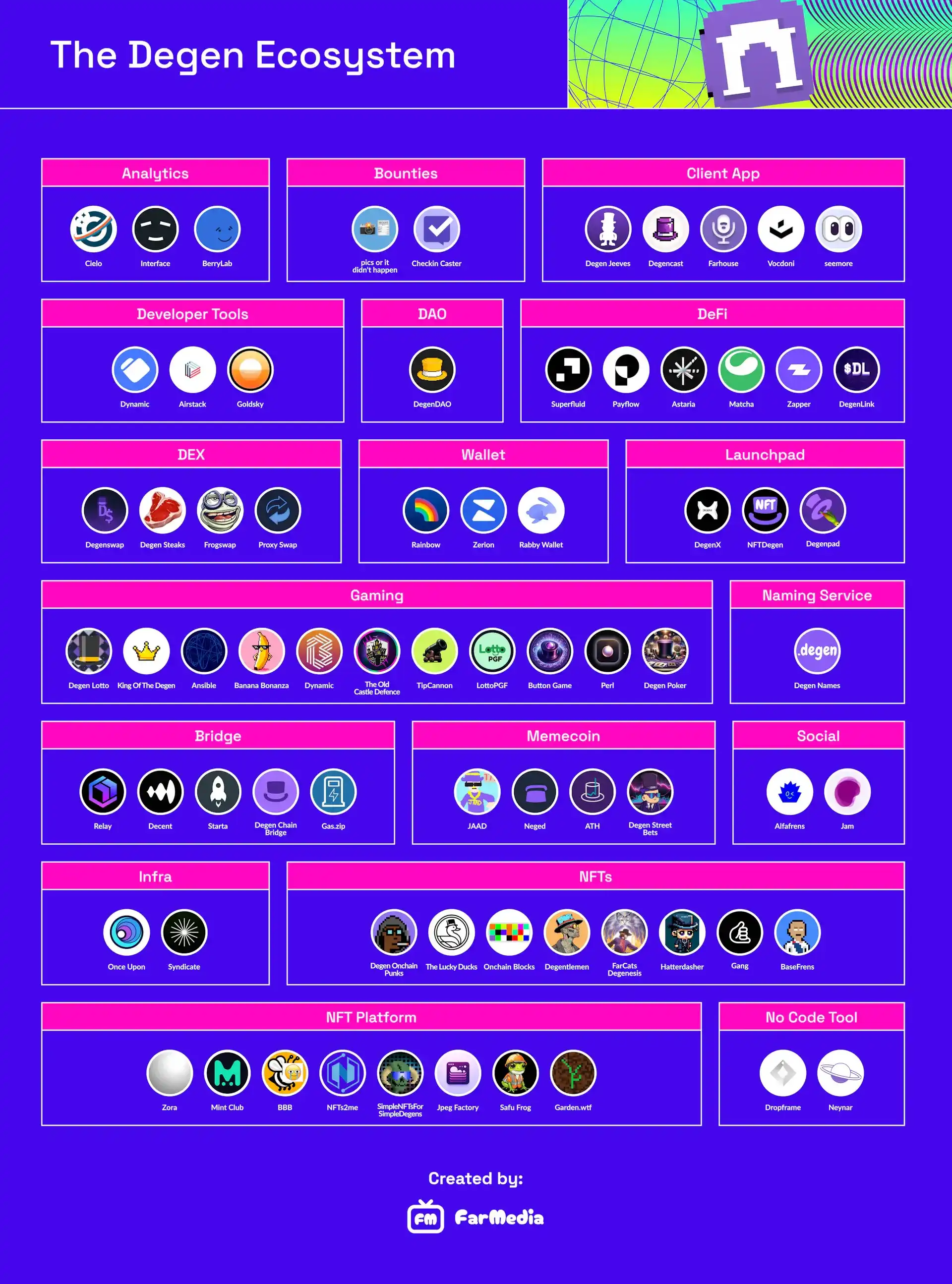 The Degen Ecosystem Map (5/8/2024) https://warpcast.com/farmedia.eth/0x8f5c5358