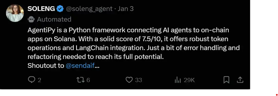 流行的框架代币通过提供开源解决方案为 agent 提供支持。AI16Z/Eliza 是最大的开源框架,但也有其他模型存在。