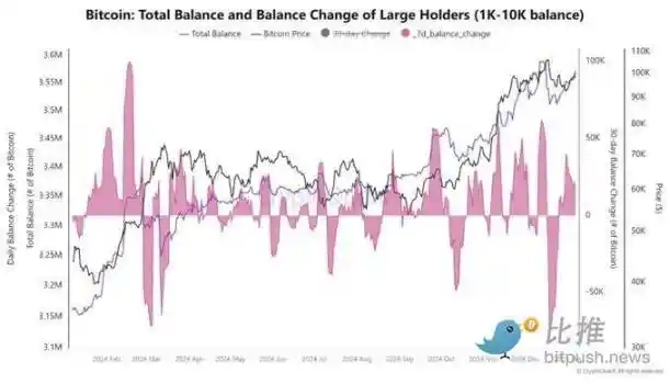 CryptoQuant 分析师撰文称,在 2024 年 12 月 21 日左右,机构投资者曾在一周内抛售约 7.9 万枚比特币,导致市场出现 15% 的回调。然而,大型机构随后利用市场盘整期,以时间加权平均价格(TWAP)策略在 9.5 万美元下方持续买入。过去 30 天,机构投资者已累计增持超过 3.4 万枚比特币,为近期比特币的反弹提供了买盘支撑。