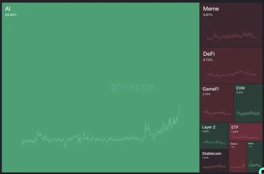 AI 话题的关注度本周首次达到了 70%(kaitoai)。