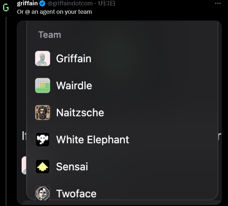 Griffain 是基于 Solana 区块链构建的全新 AI Agent。其设计旨在通过整合个人和专业 AI 代理,简化用户与加密货币的交互方式。Griffain 可自动完成钱包管理、代币交易和 NFT 铸造等复杂任务。允许用户执行从简单到复杂的各种操作,如任务自动化(DCA)、发布 memecoin 和进行空投等。