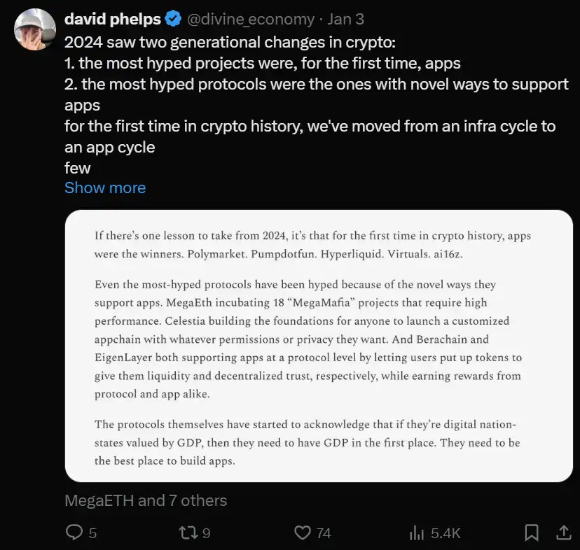 这并不意味着我看衰以太坊、Solana 或其他领先的 L1/L2 生态系统。这些生态在未来几年内也可以并且将会在其技术栈中引入许多这些功能。但我相信,那些诞生于这个时代、与新一代开发者需求更加契合的 L1 将获得巨大的增长机会。项目如 ai16z 和 Virtuals 已经成为这一领域早期的前兆,展示了可能的未来形态及其潜在的市场规模。