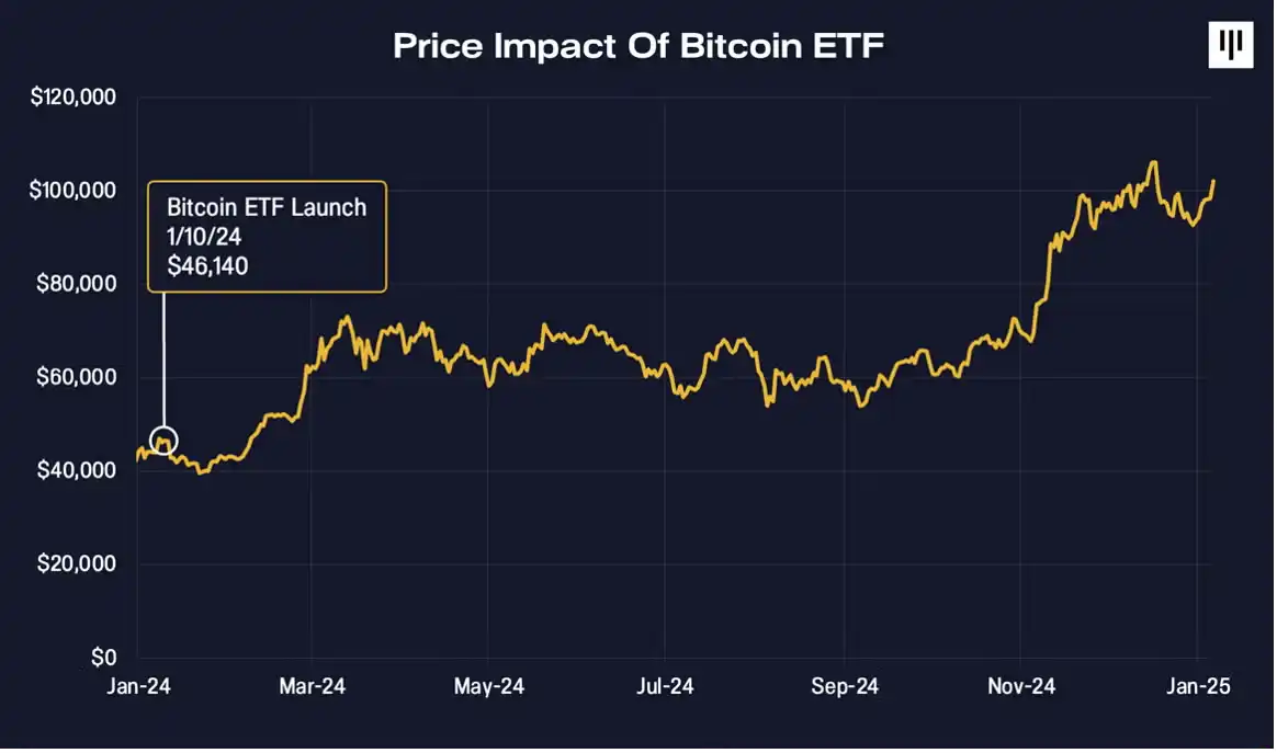 自比特币 ETF 推出以来,比特币上涨了 103%。