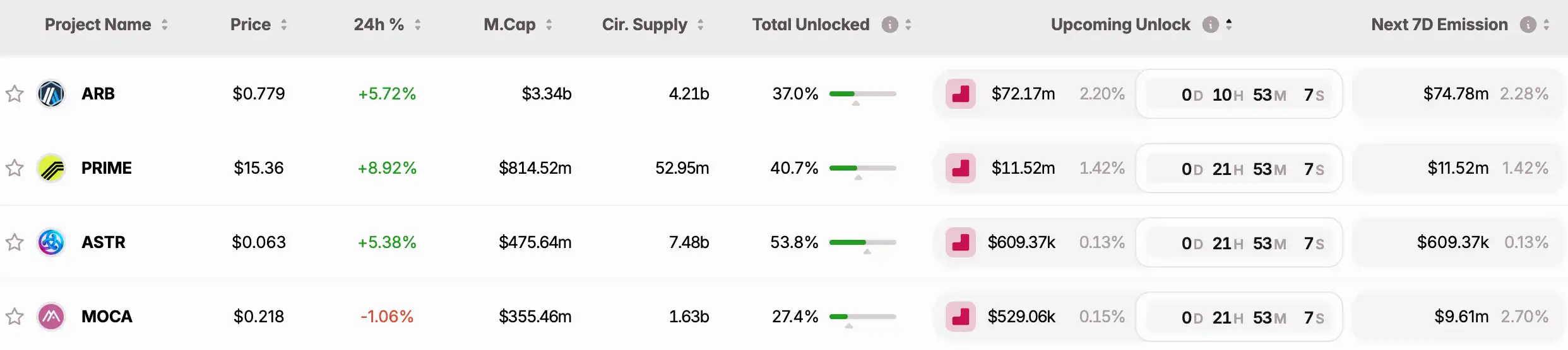 每日市场整体资金热度(根据资金费率反映)与代币解锁