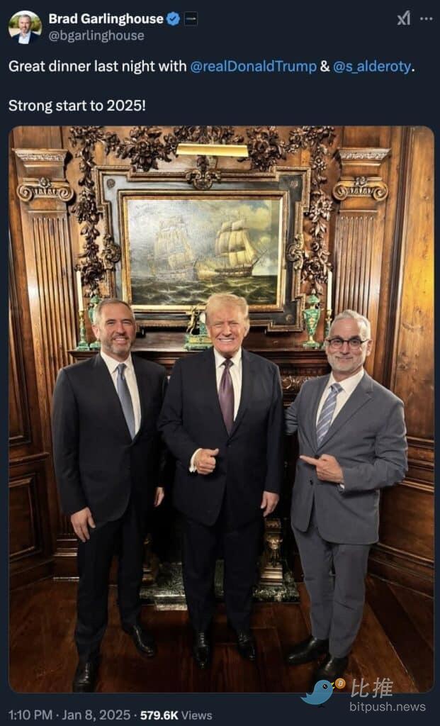 Ripple 总裁 Monica Long 上周在一次采访中表示,她预计现货 ETF 将「很快」获得批准,因为新政府的批准将加速这一进程。此外,Ripple 的领导层已与即将上任的美国政府直接接触,首席执行官 Brad Garlinghouse 和首席法律官 Stuart Alderoty 最近会见了特朗普,表明双方可能就塑造有利于数字资产的监管环境展开合作。