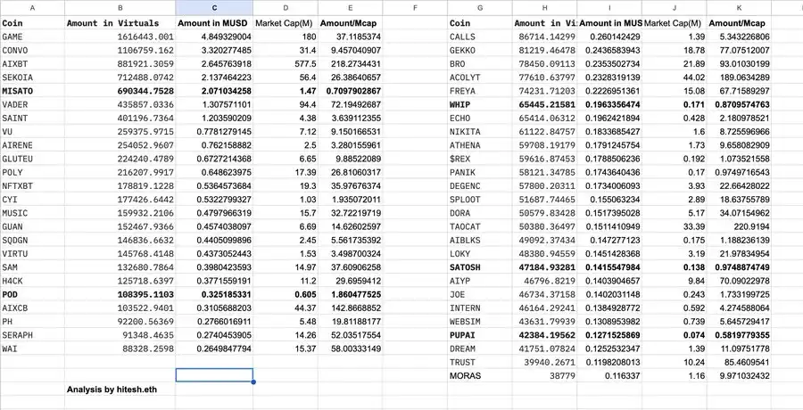 2、大部分流动性在非 VIRTUAL 配对池的代币