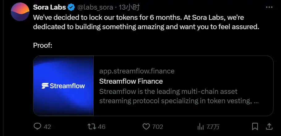 同时项目方还宣布了将持有的代币锁定 6 个月。
