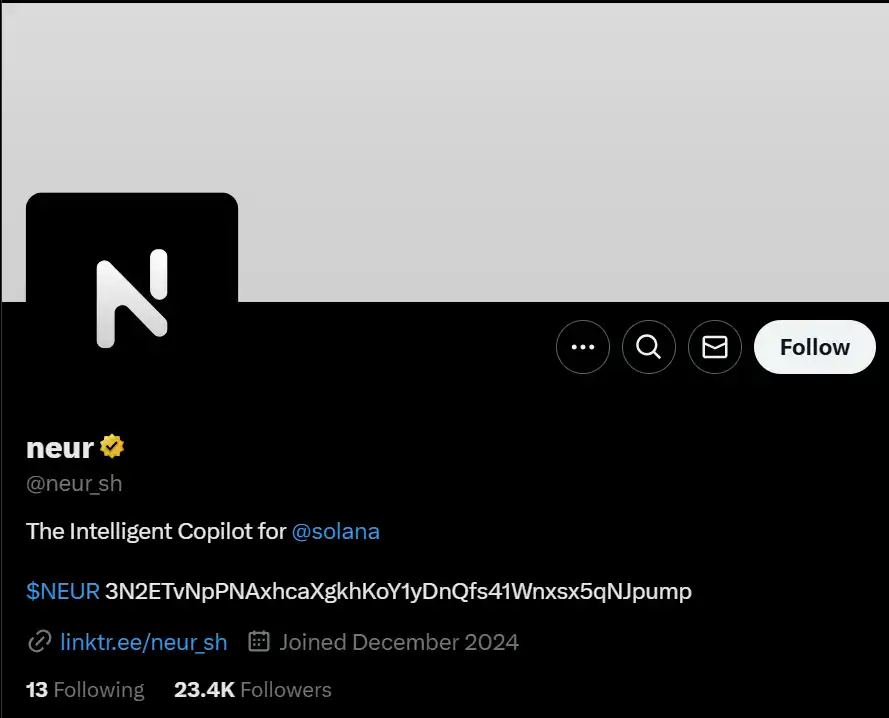 再来看 Neur 代币的 24 小时交易数据,并没有呈现和前三名一样的涨幅趋势,尽管在 Solana AI 黑客松消息公布后,Neur 短暂上涨 10.21%,但随即回落。目前市值下降至 4862 万美元,交易量保持在 800 万美元左右。
